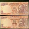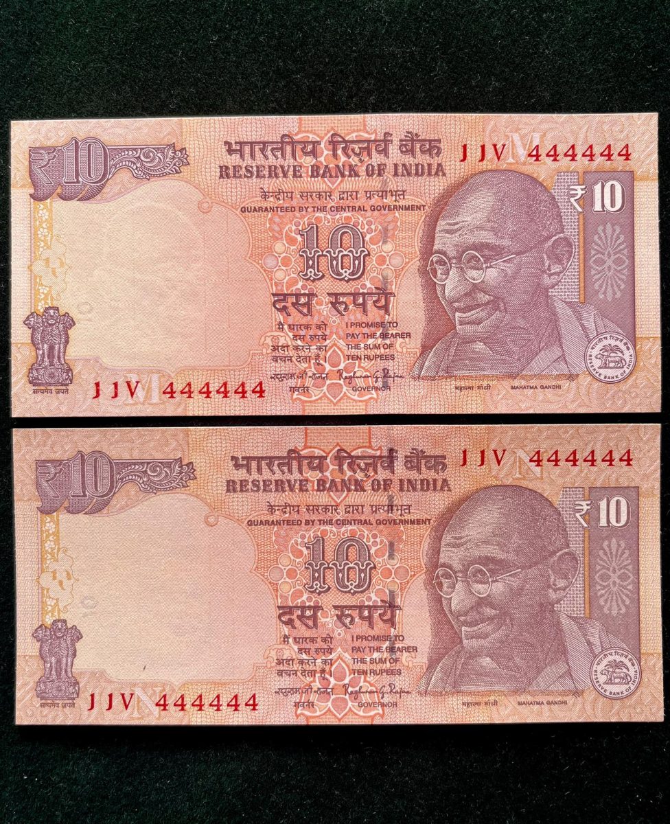 Rs 10 India Banknote TWIN SET Gem Unc Very Unique Set Solid Number 11V 444444
