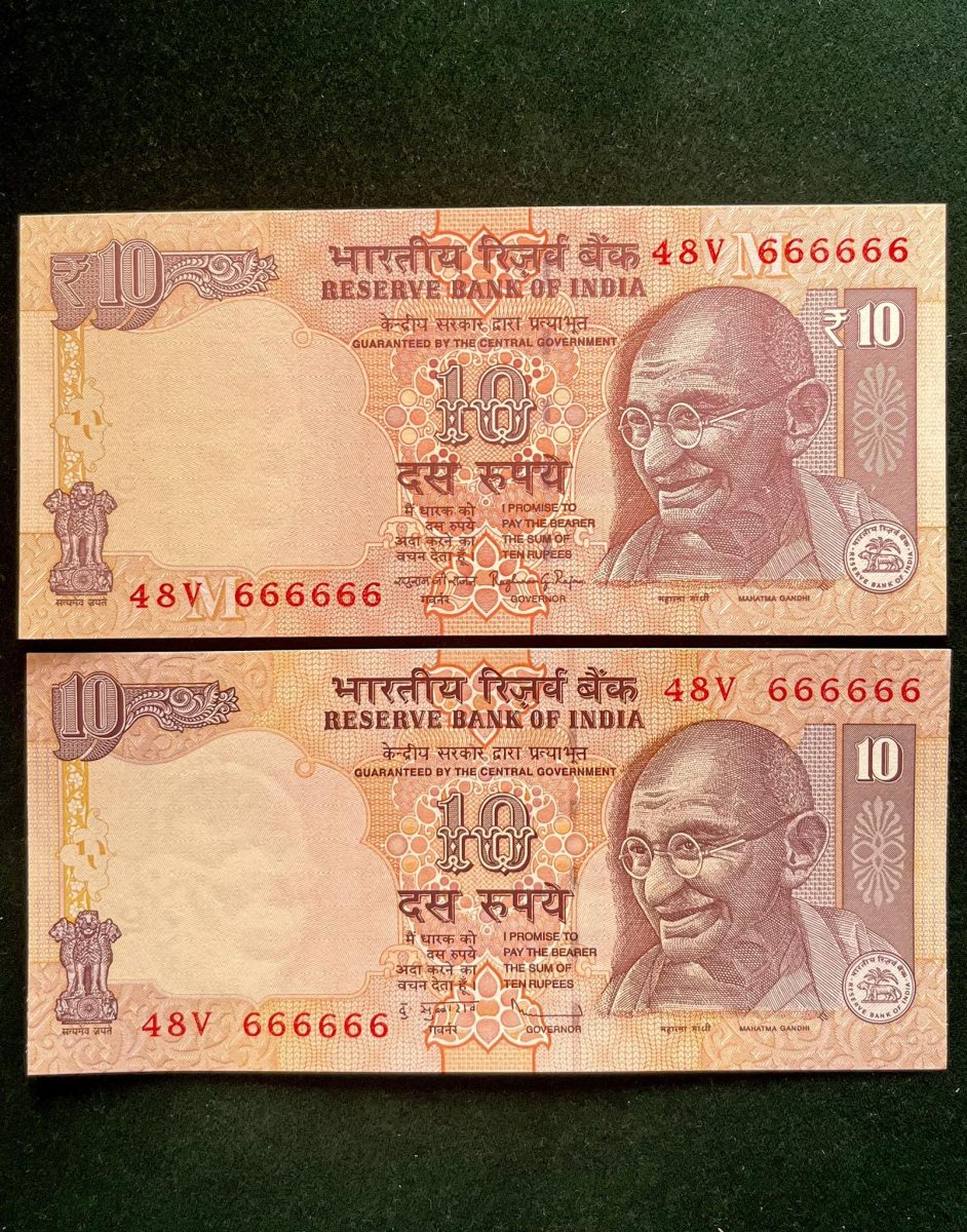 Rs 10 India Banknote TWIN SET Gem Unc Very Unique Set Solid Number 48V 666666