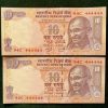 Rs 10 India Banknote TWIN SET Gem Unc Very Unique Set Solid Number 33N 666666