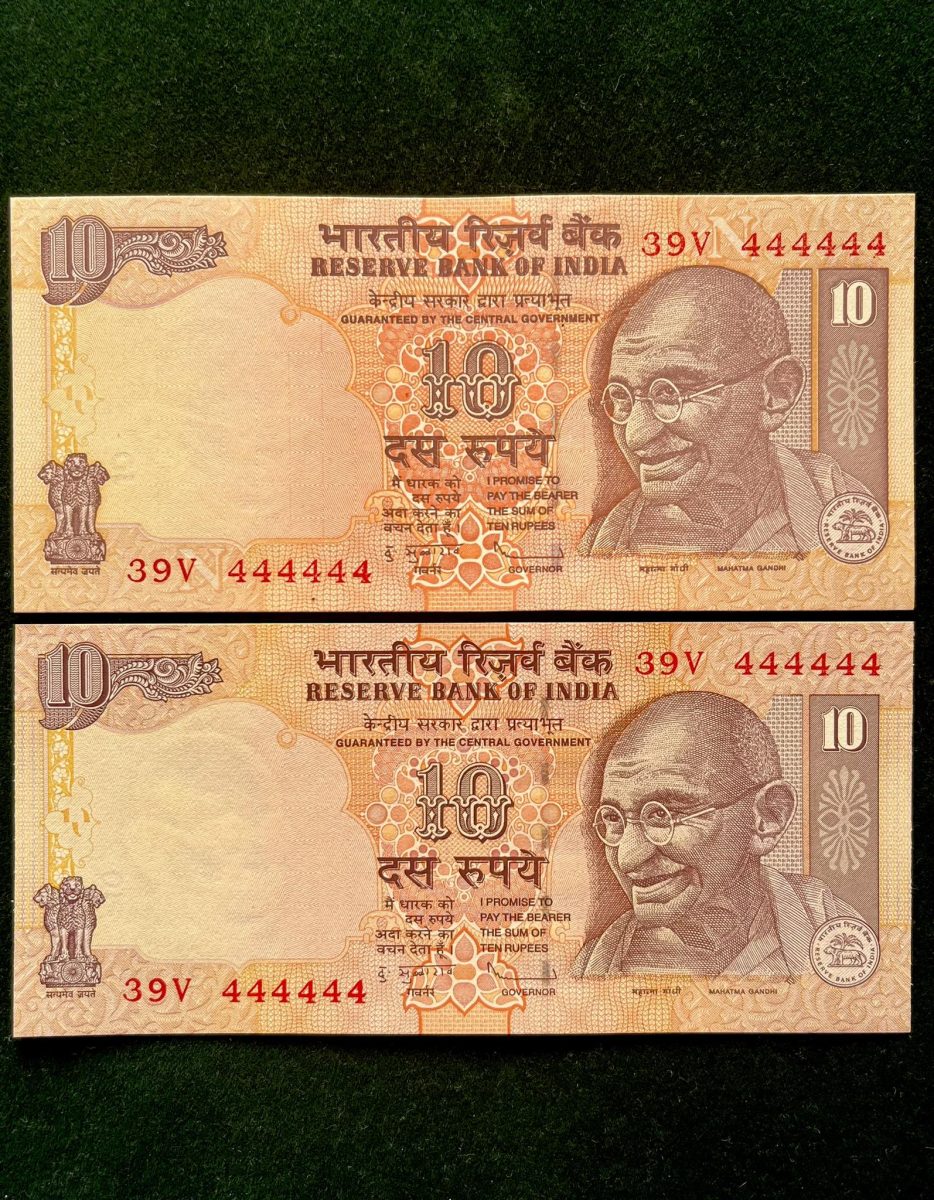 Rs 10 India Banknote TWIN SET Gem Unc Very Unique Set Solid Number 39V 444444