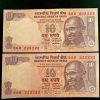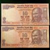 Rs 10 India Banknote Twin Set Gem Unc Very Unique Set Solid Number 51G 333333