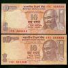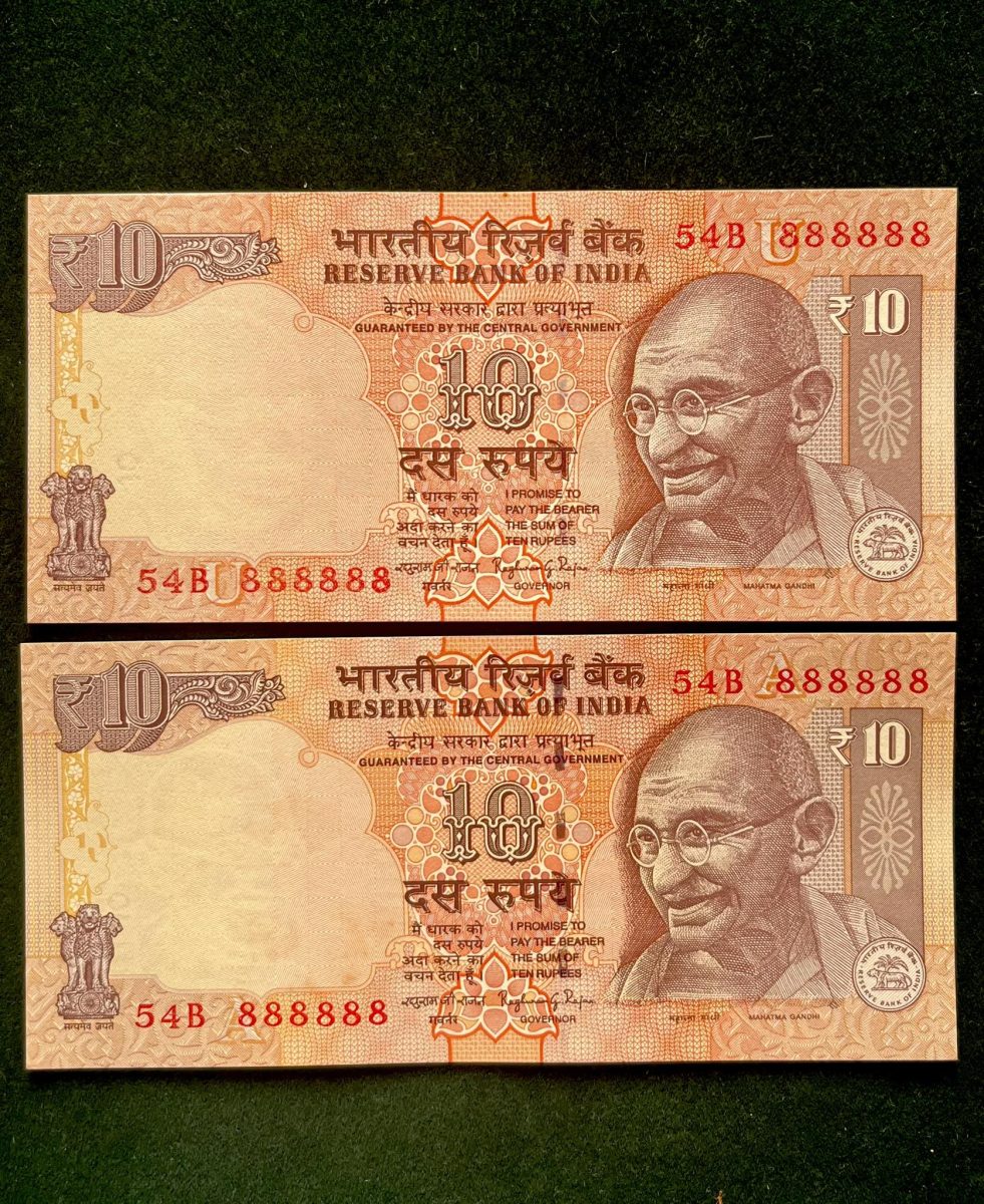 Rs 10 India Banknote TWIN SET Gem Unc Very Unique Set Solid Number 54B 888888