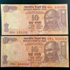 Rs 10 India Banknote TWIN SET Gem Unc Very Unique Set Solid Number 57U 333333