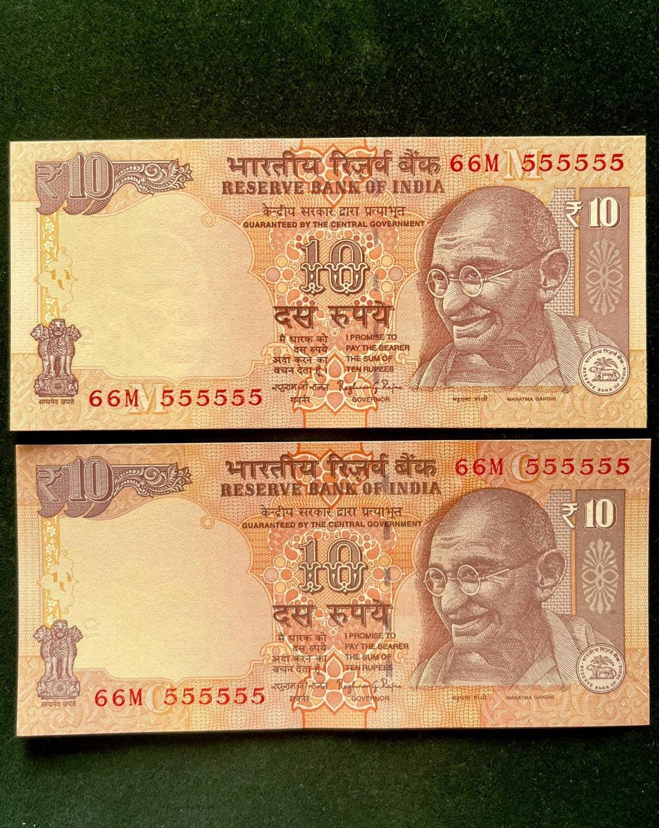 Rs 10 India Banknote TWIN SET Gem Unc Very Unique Set Solid Number 66W 555555