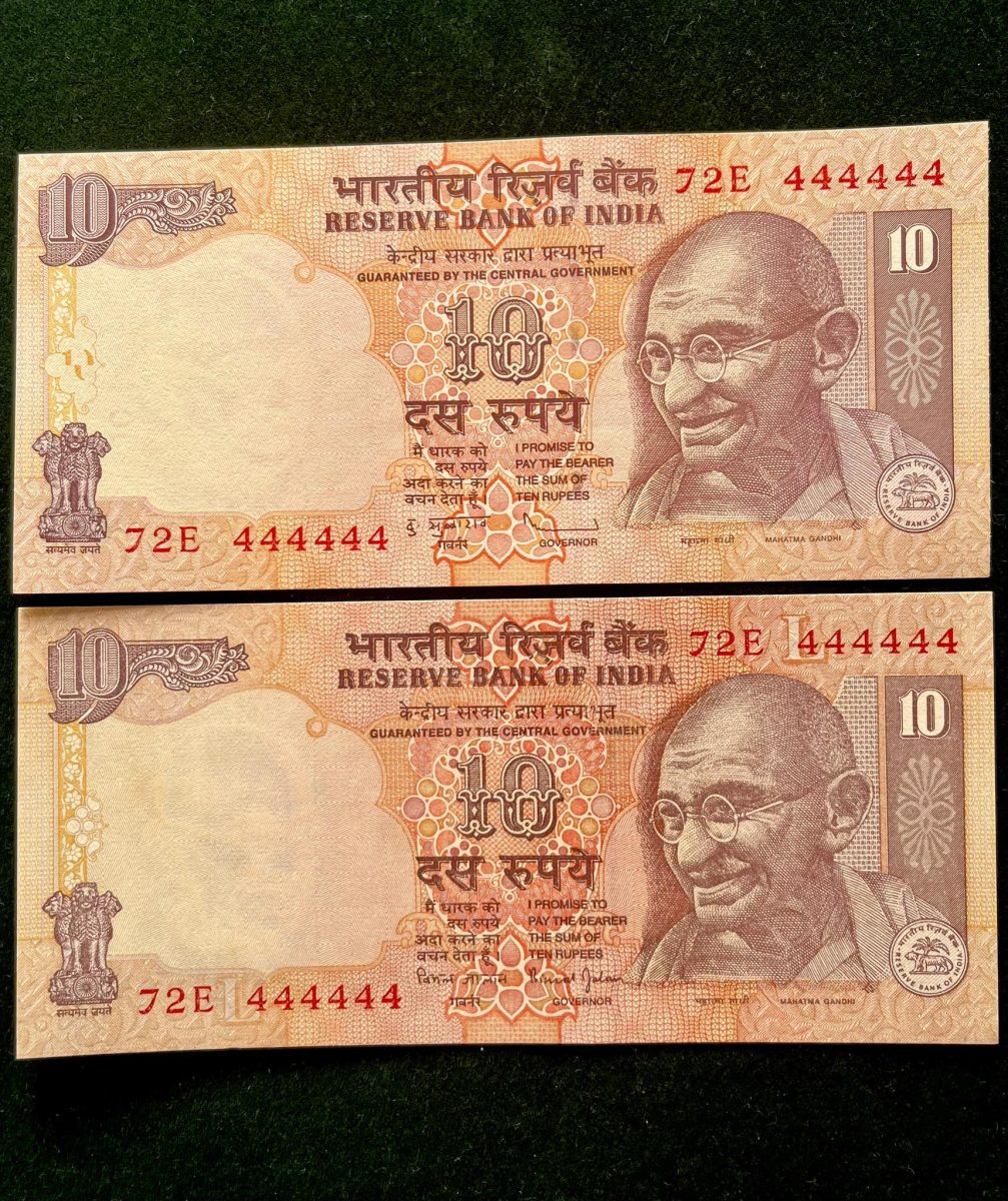 Rs 10 India Banknote TWIN SET Gem Unc Very Unique Set Solid Number 72E 444444
