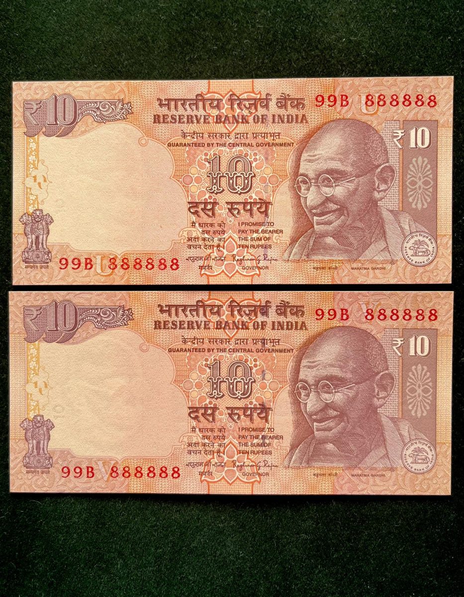 Rs 10 India Banknote TWIN SET Gem Unc Very Unique Set Solid Number 99B 888888
