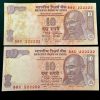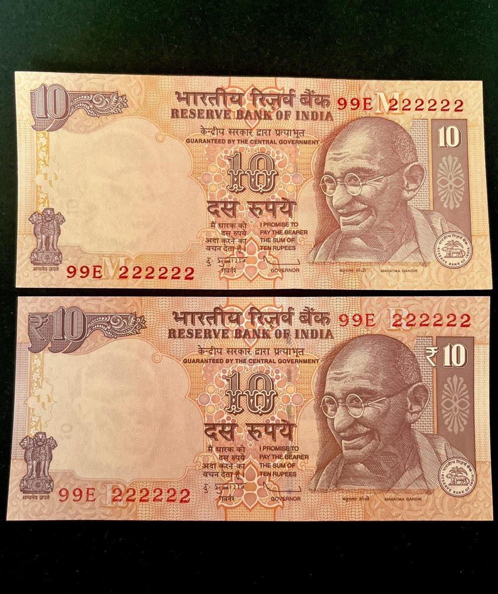Rs 10 India Banknote TWIN SET Gem Unc Very Unique Set Solid Number 99E 222222