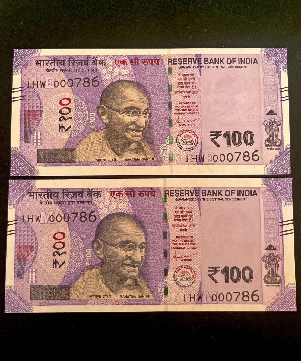 Rs 100 INDIA Banknote HOLY Number TWIN SET 1HW 000786