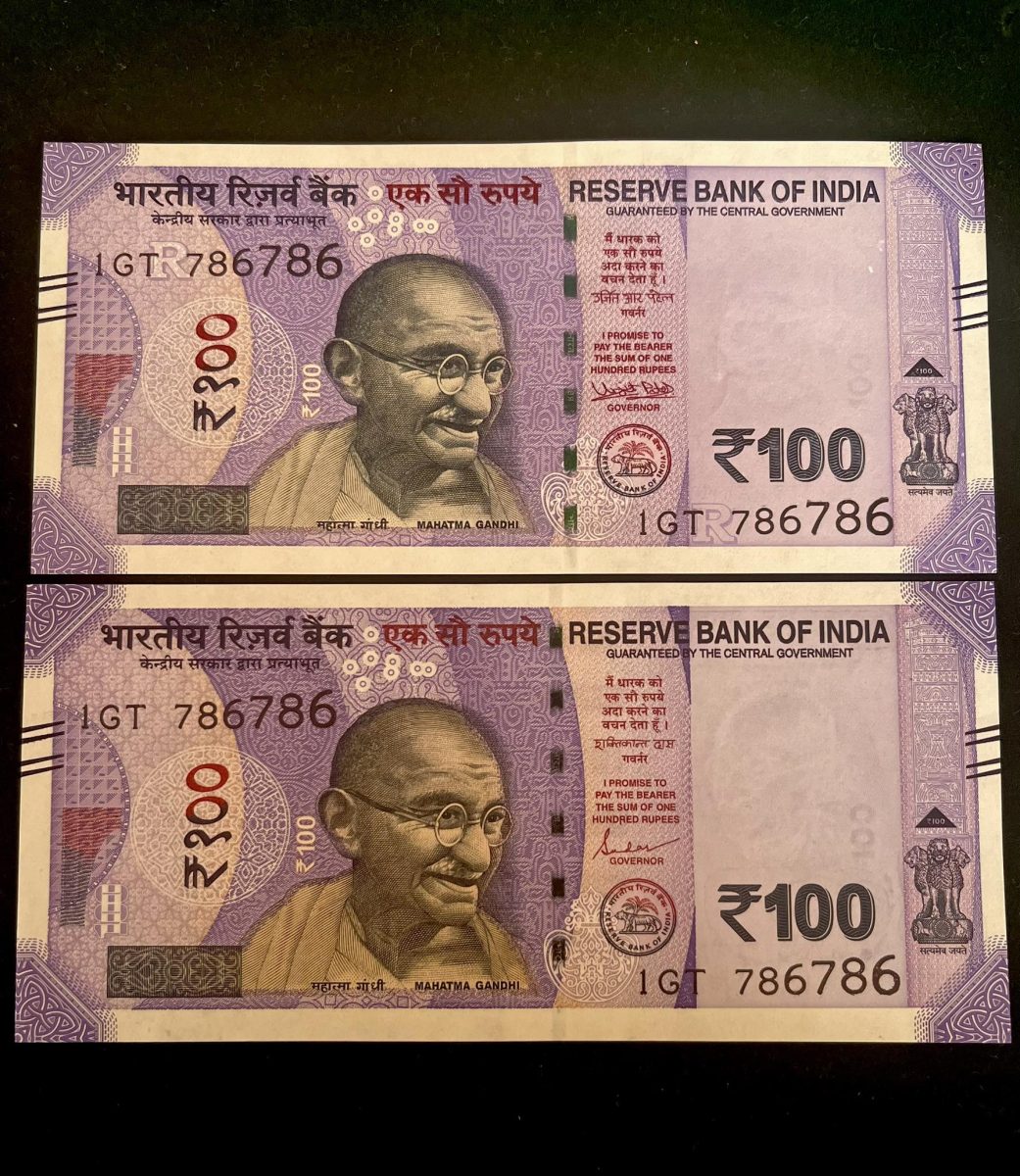 Rs 100 INDIA Banknote HOLY Number TWIN SET 1GT 786786