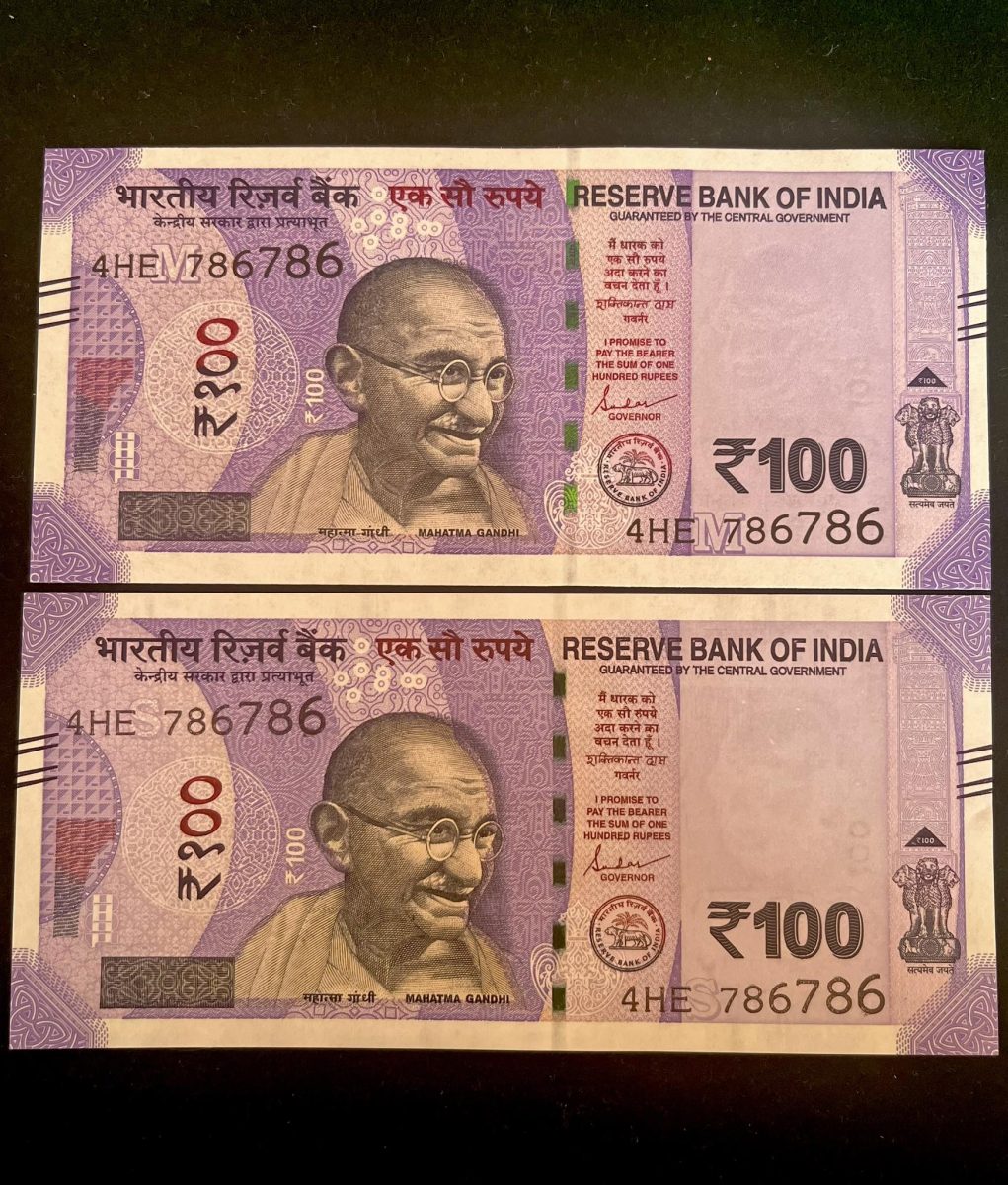 Delve into the fascinating world of collectible banknotes with this rare Rs 100 INDIA Banknote HOLY Number TWIN SET 4HE 786786. Issued with an inset “S” in 2018 and an inset “M” in 2022, this twin pair note boasts the unique feature of both numbers being the same, making it a highly sought-after piece for collectors. The denomination of 100 Rupees adds to its appeal, while the fancy number 786786 enhances its rarity and value.