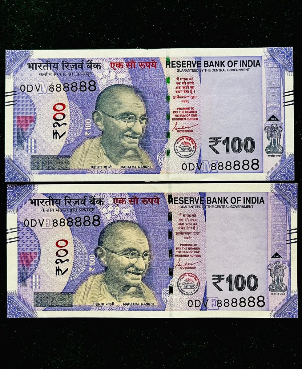 Rs 100 India Banknote TWIN SET Gem Unc Very Unique Solid Number 0DV 888888