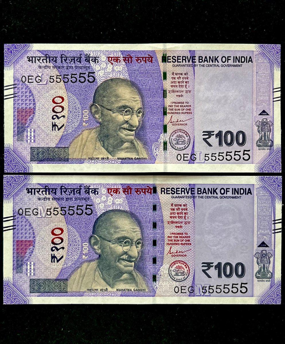 Rs 100 India Banknote TWIN SET Gem Unc Very Unique Solid Number 0EG 555555