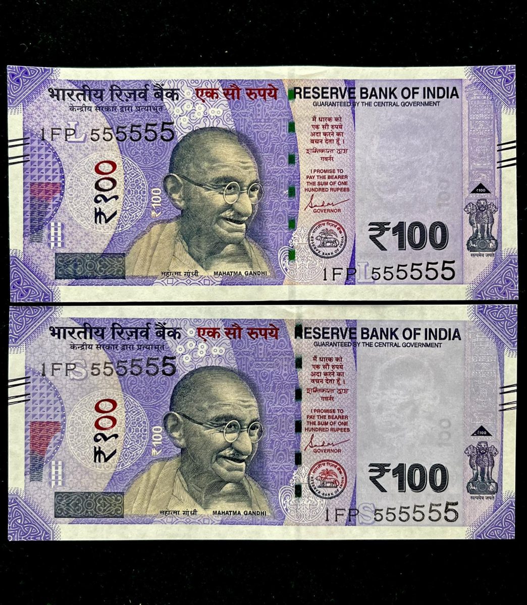 Rs 100 India Banknote TWIN SET Gem Unc Very Unique Solid Number 1FP 555555