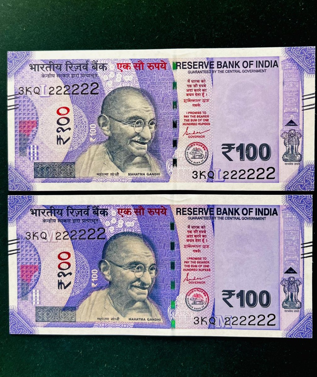 Rs 100 India Banknote TWIN SET Gem Unc Very Unique Solid Number 3KQ 222222