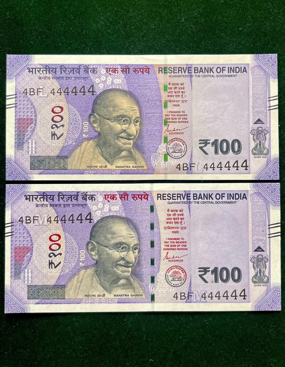 Rs 100 India Banknote TWIN SET Gem Unc Very Unique Solid Number 4BF 444444
