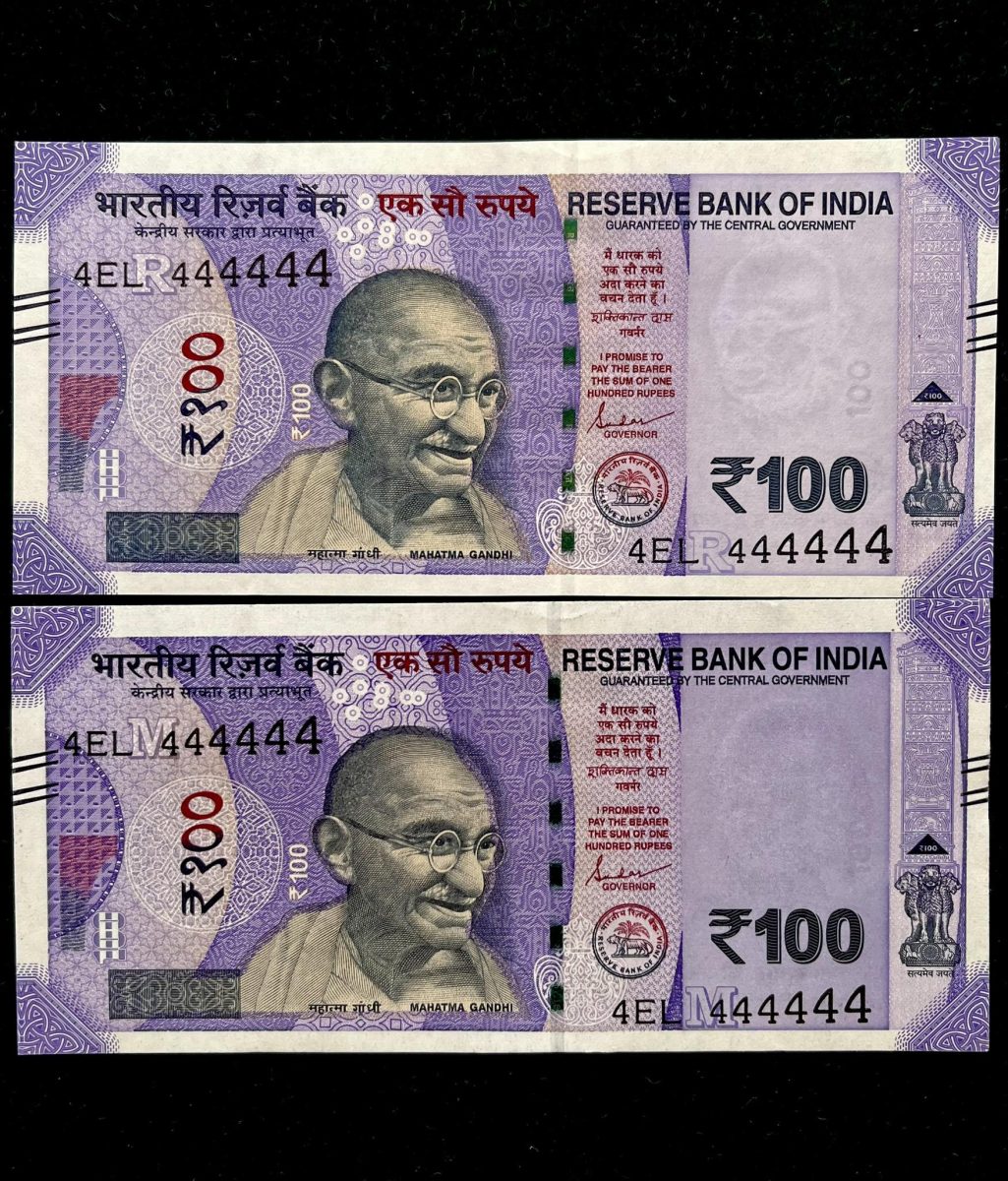 Rs 100 India Banknote TWIN SET Gem Unc Very Unique Solid Number 4EL 444444