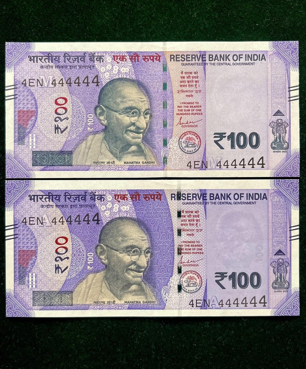 Rs 100 India Banknote TWIN SET Gem Unc Very Unique Solid Number 4EN 444444