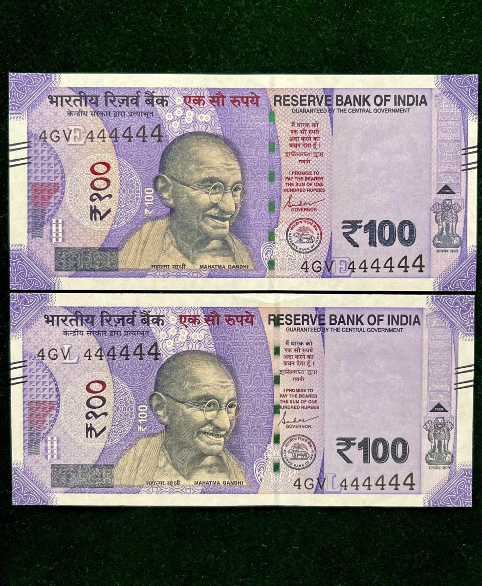 Rs 100 India Banknote TWIN SET Gem Unc Very Unique Solid Number 4GV 444444