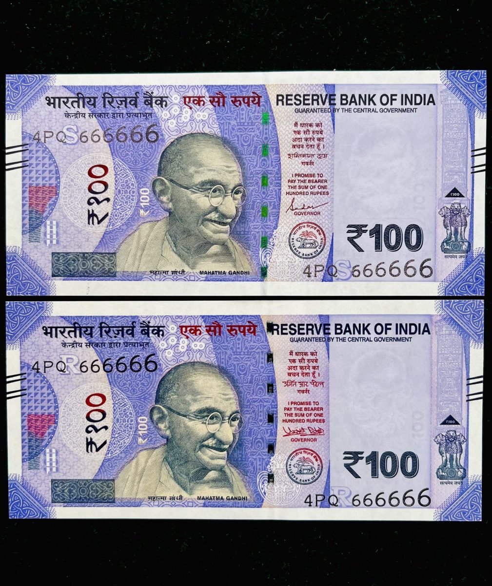 Rs 100 India Banknote TWIN SET Gem Unc Very Unique Solid Number 4PQ 666666