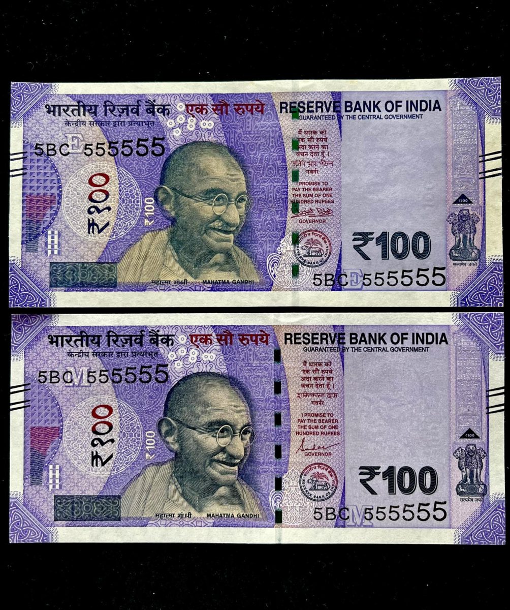 Rs 100 India Banknote TWIN SET Gem Unc Very Unique Solid Number 5BC 555555