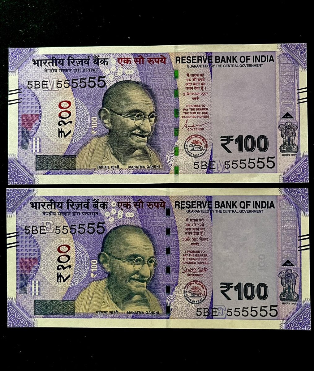Rs 100 India Banknote TWIN SET Gem Unc Very Unique Solid Number 5BE 555555