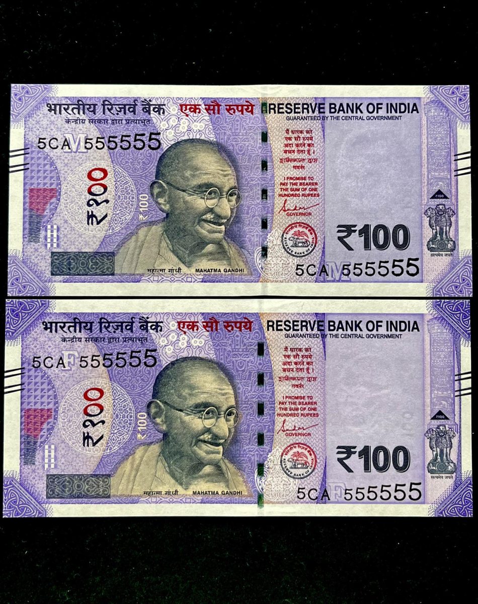 Rs 100 India Banknote TWIN SET Gem Unc Very Unique Solid Number 5CA 555555
