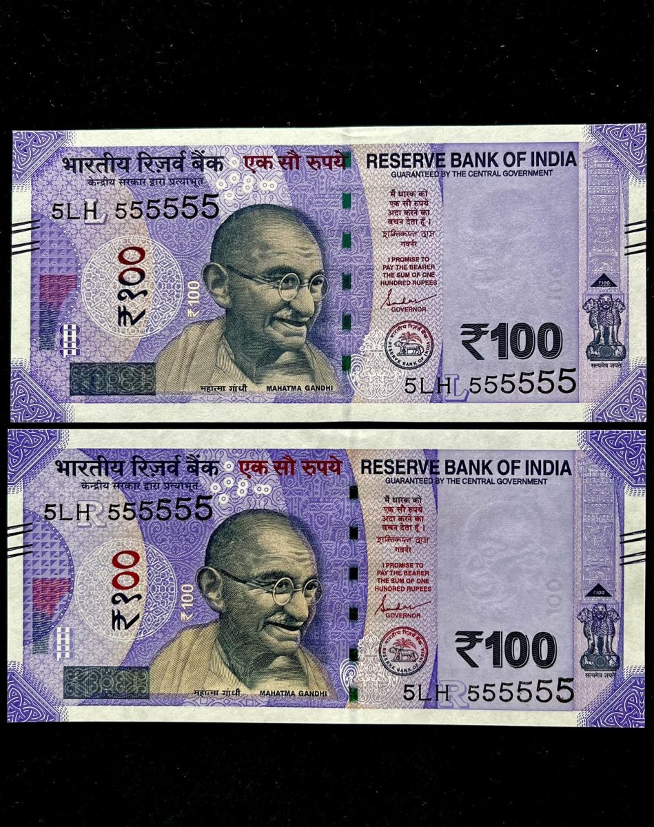 Rs 100 India Banknote TWIN SET Gem Unc Very Unique Solid Number 5LH 555555
