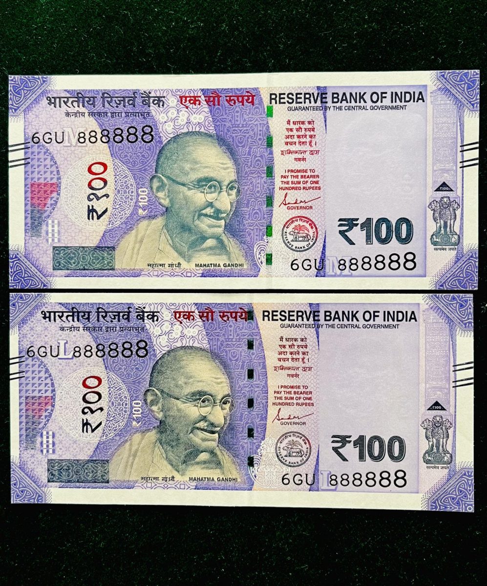 Rs 100 India Banknote TWIN SET Gem Unc Very Unique Solid Number 6GU 888888