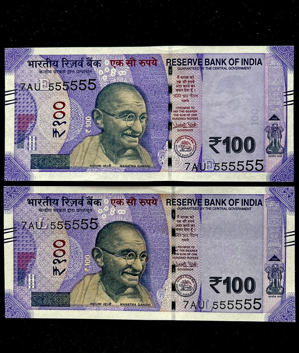 Rs 100 India Banknote TWIN SET Gem Unc Very Unique Solid Number 7AU 555555