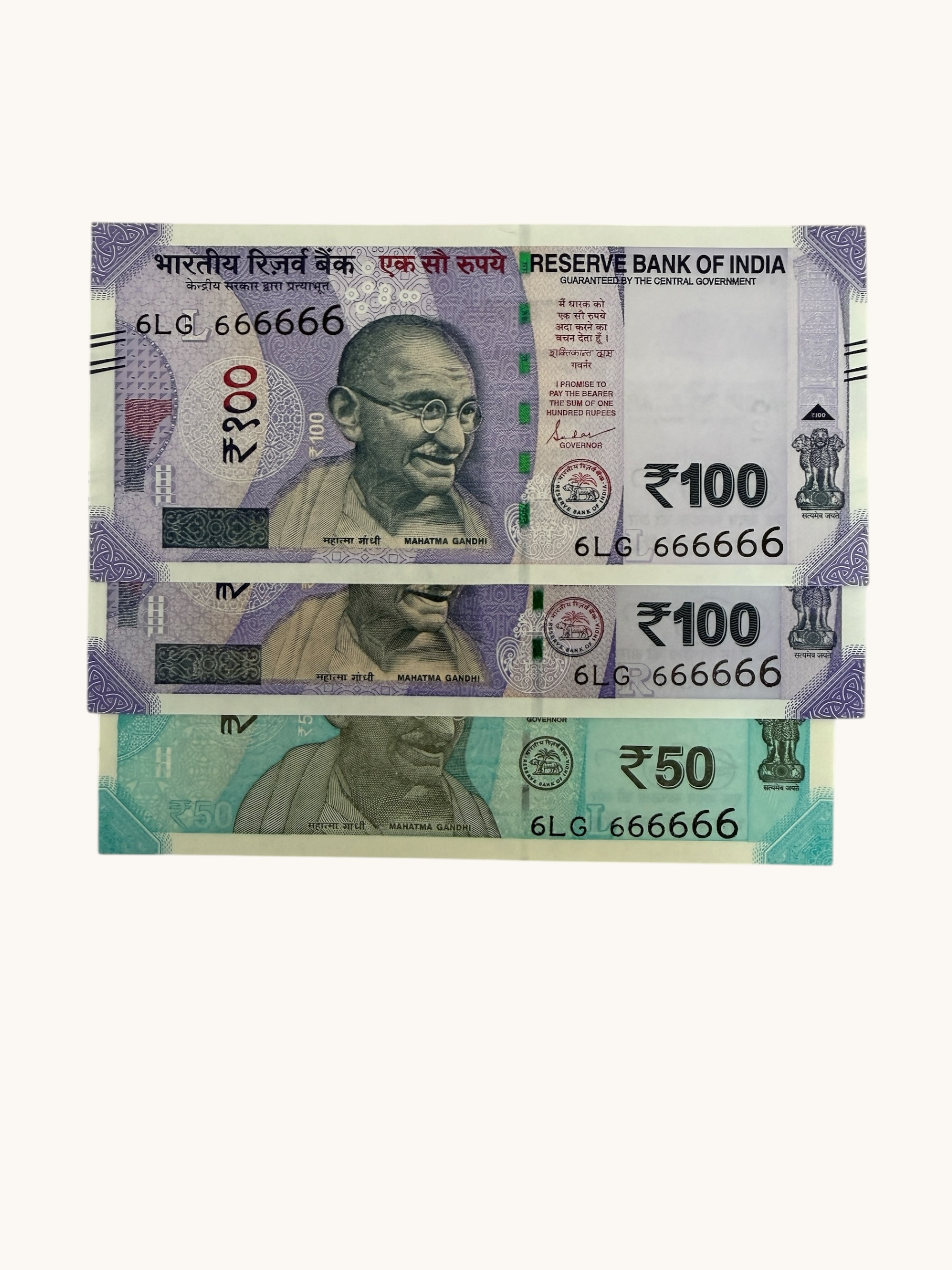 Rs 100 to 50 Ultra Unique Pair Set of Banknotes Same Number 6LG 666666 Gem UNC Unique and Rare