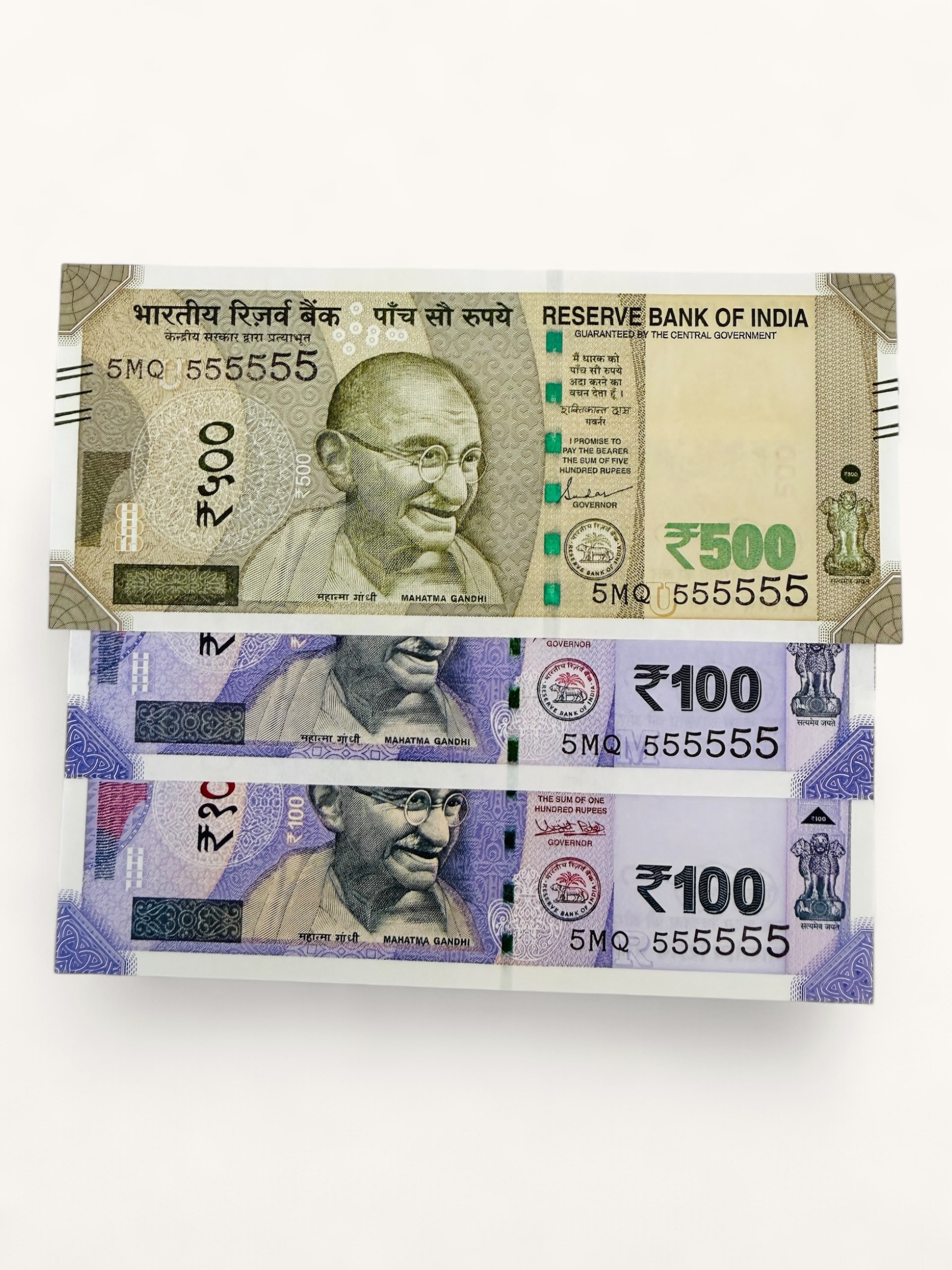 Rs 100 to 500 Ultra Unique Pair Set of Banknotes Same Number 5MQ 555555 Gem UNC Unique and Rare