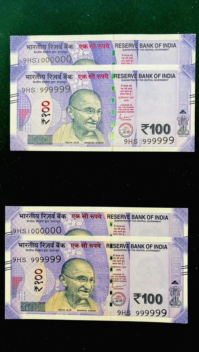Rs 100 Twin Pair Banknote Set Same Number Gem Unc 999999 AND 1 Million Unique and Rare
