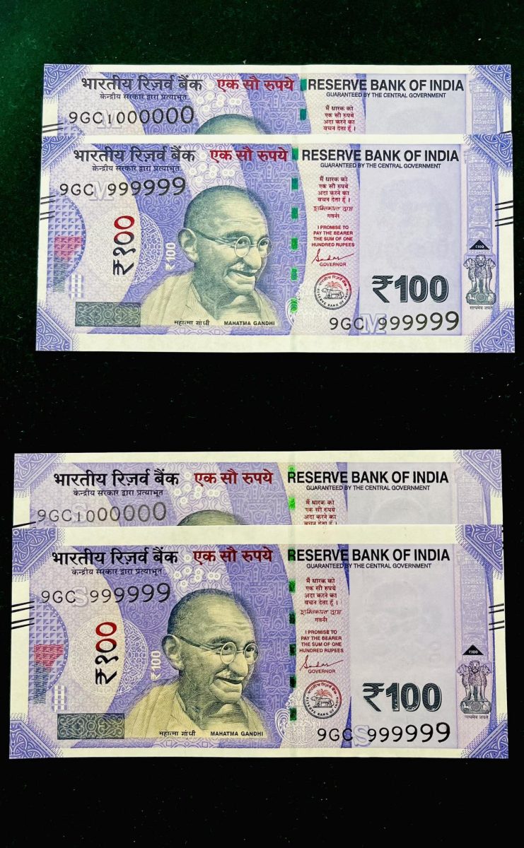 Rs 100 Twin Pair Banknote Set Same Number Gem Unc 999999 AND 1 Million Unique and Rare