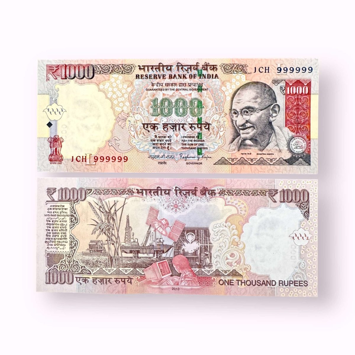 🏷️ Rare Rs 1000 India Banknote with Fancy Number 999999