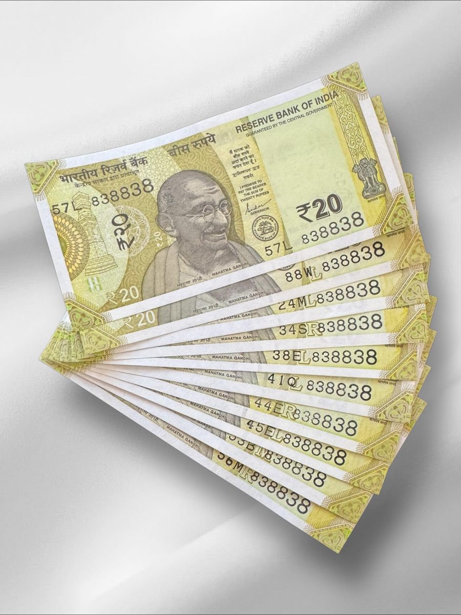 RS 20/- India Banknote Latest Issue Number Repeater 838838 x 10 GEM UNC Unique and Rare