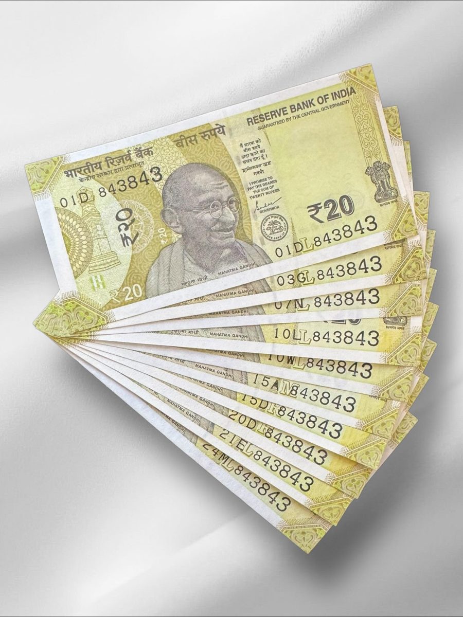 RS 20/- India Banknote Latest Issue Number Repeater 843843 x 10 GEM UNC Unique and Rare