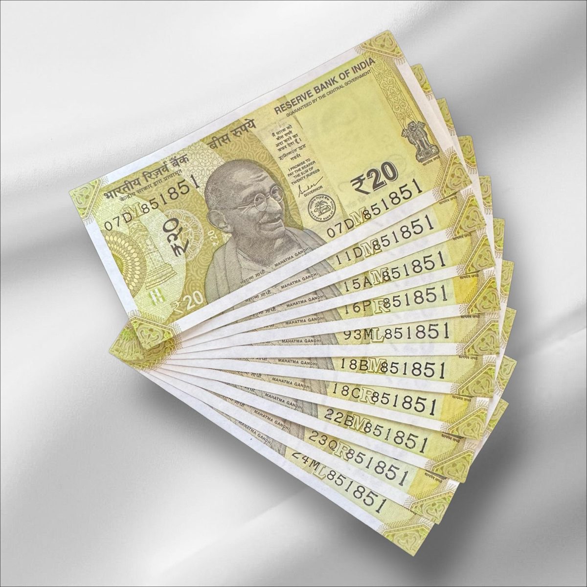 RS 20/- India Banknote Latest Issue Number Repeater 851851 x 10 GEM UNC Unique and Rare