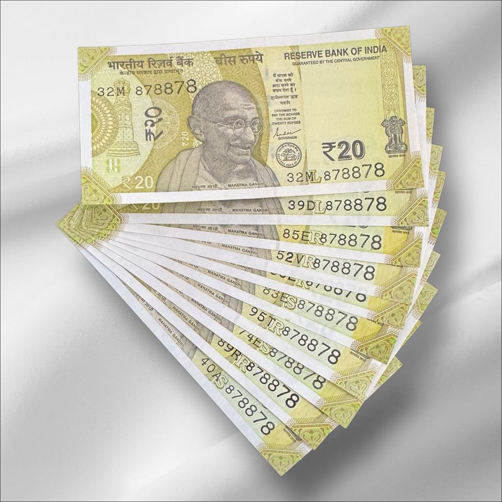 RS 20/- India Banknote Latest Issue Number Repeater 878878 x 10 GEM UNC Unique and Rare