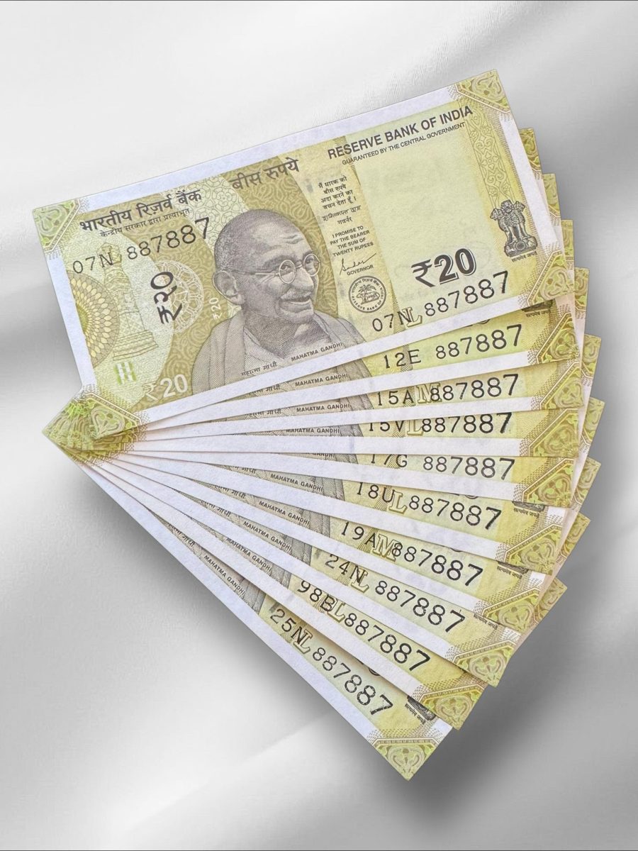 RS 20/- India Banknote Latest Issue Number Repeater 887887 x 10 GEM UNC Unique and Rare
