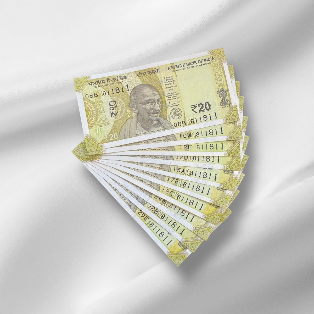 ✅ Rare Set of 10 Rs 20 Banknotes with Same Number 811811