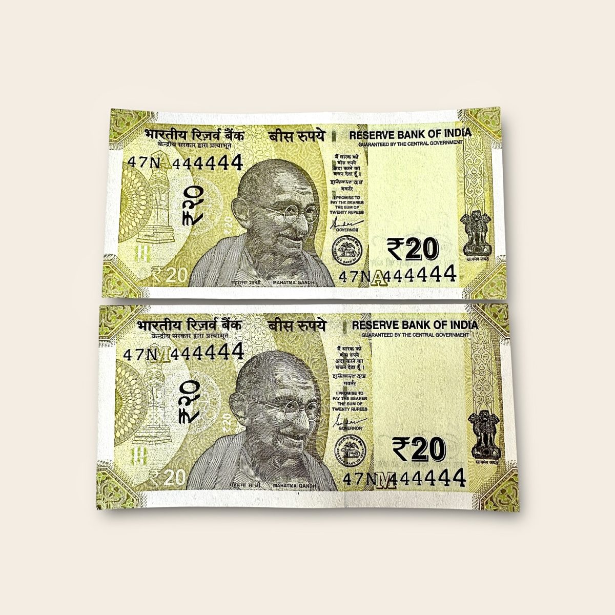 Rs 20 India Banknote Twin Pair Set GEM UNC 47N 444444 Unique and Rare