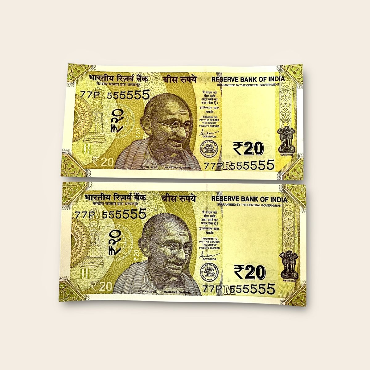 Rs 20 India Banknote Twin Pair Set GEM UNC 56S 555555 Unique and Rare