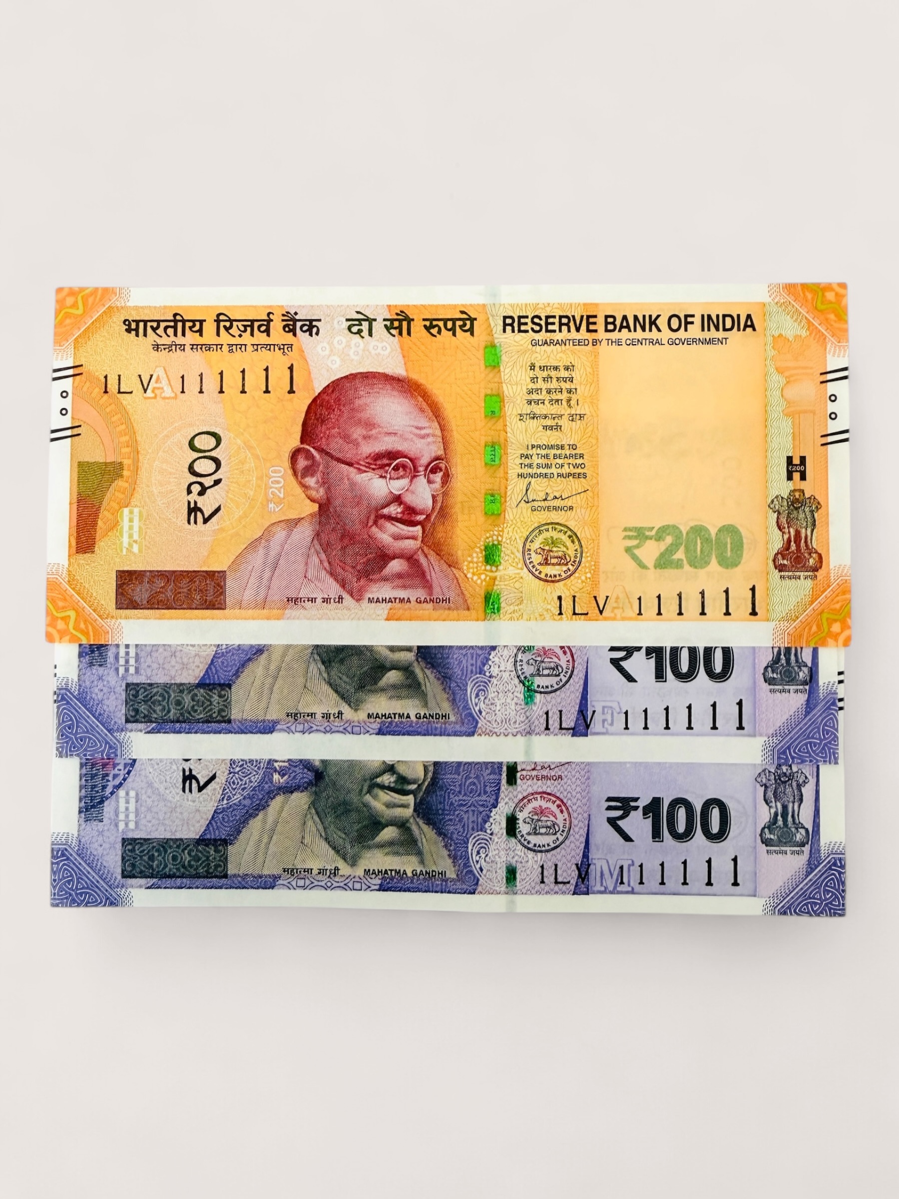 Rs 200 and 500 Ultra Unique Pair Set of Banknotes Same Number 1LV 111111 Gem UNC Unique and Rare