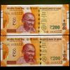Rs 200 India Banknote Twin Set Super Solid 0DN 222222 Gem Unc Unique and Rare