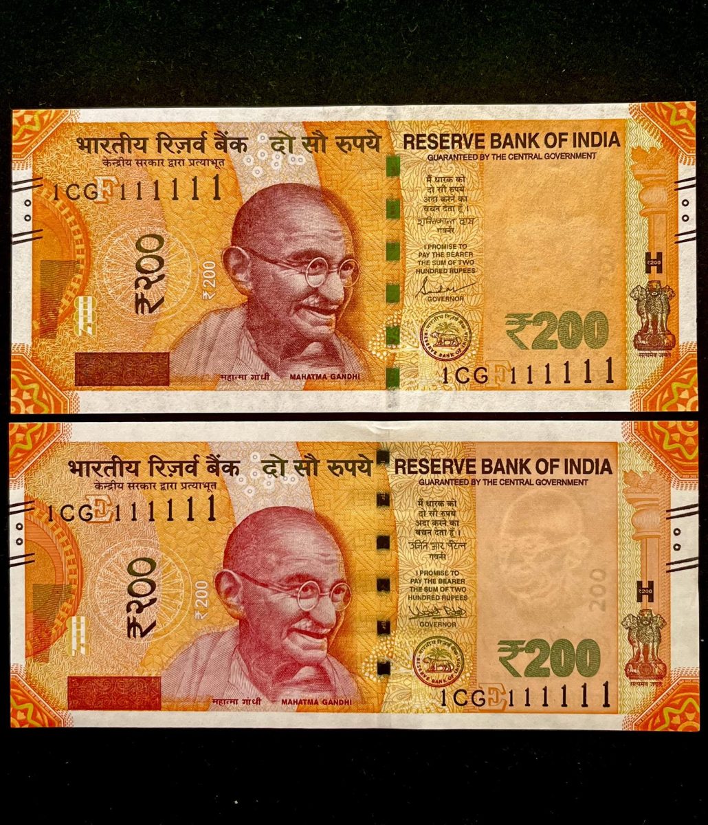 Rs 200 India Banknote Twin Set Super Solid 1CG 111111 Gem Unc Unique and Rare