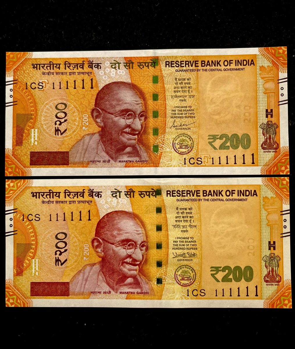 Rs 200 India Banknote Twin Set Super Solid 1CS 111111 Gem Unc Unique and Rare