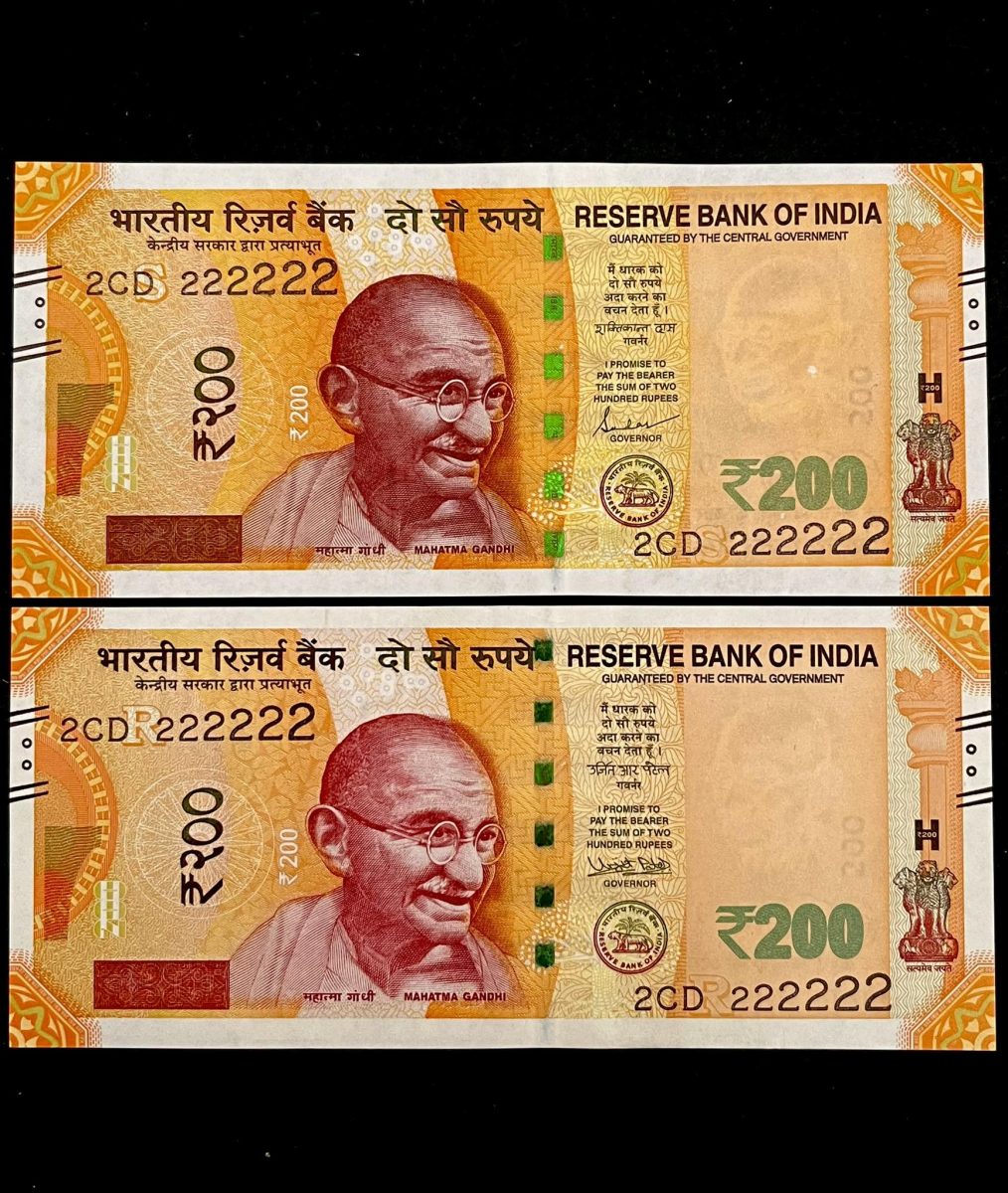 Rs 200 India Banknote Twin Set Super Solid 2CD 222222 Gem Unc Unique and Rare