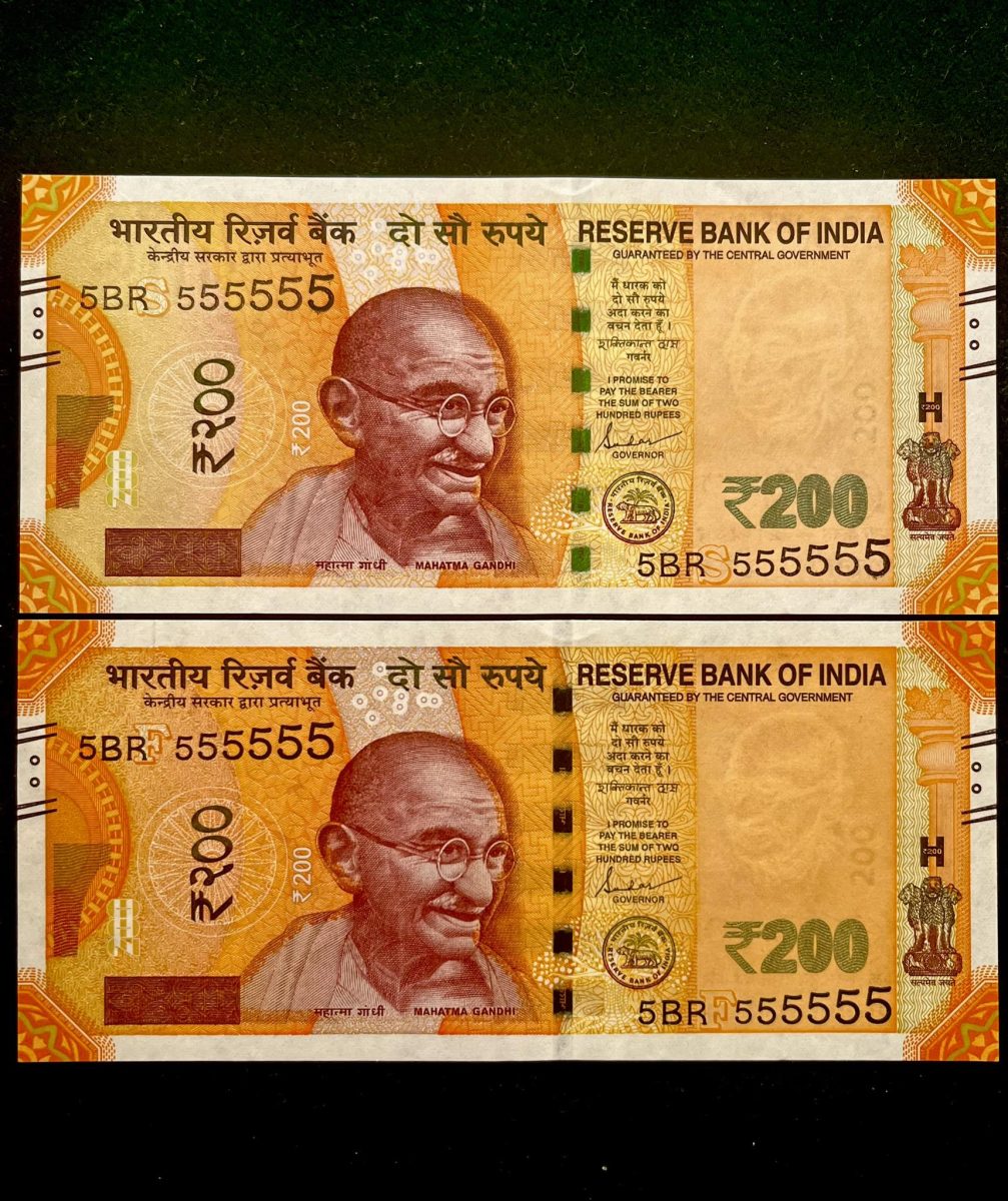 This exquisite collectible item is a rare gem for any banknote enthusiast. The Rs 200 India Banknote Twin Set features identical notes with the fancy number 555555, denoting an auspicious and unique pattern. Issued in UNC (new) condition, this set showcases a striking design and superior quality. The banknotes bear the coveted Super Solid 5BR prefix, adding to their desirability among collectors. With a rich history dating back to ancient currency systems, these banknotes offer a glimpse into India’s economic heritage. Ideal for collectors seeking to own a piece of history, this twin set is a valuable addition to any collection. The impeccable condition, unique serial number, and rarity of this set make it a prized possession for enthusiasts looking for distinctive and valuable banknotes.