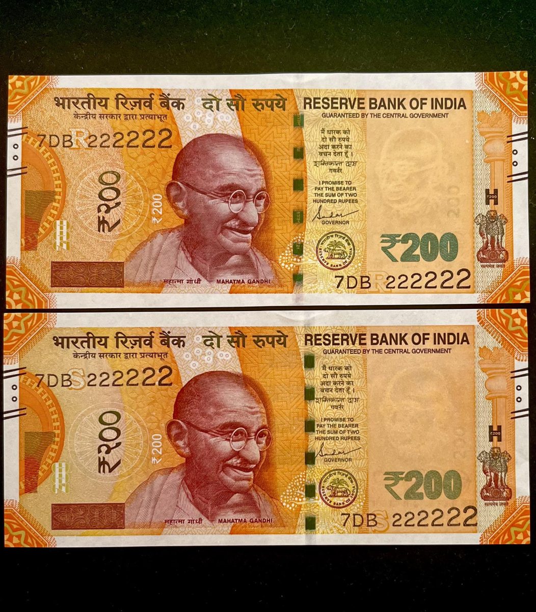 Rs 200 India Banknote Twin Set Super Solid 7DB 222222 Gem Unc Unique and Rare