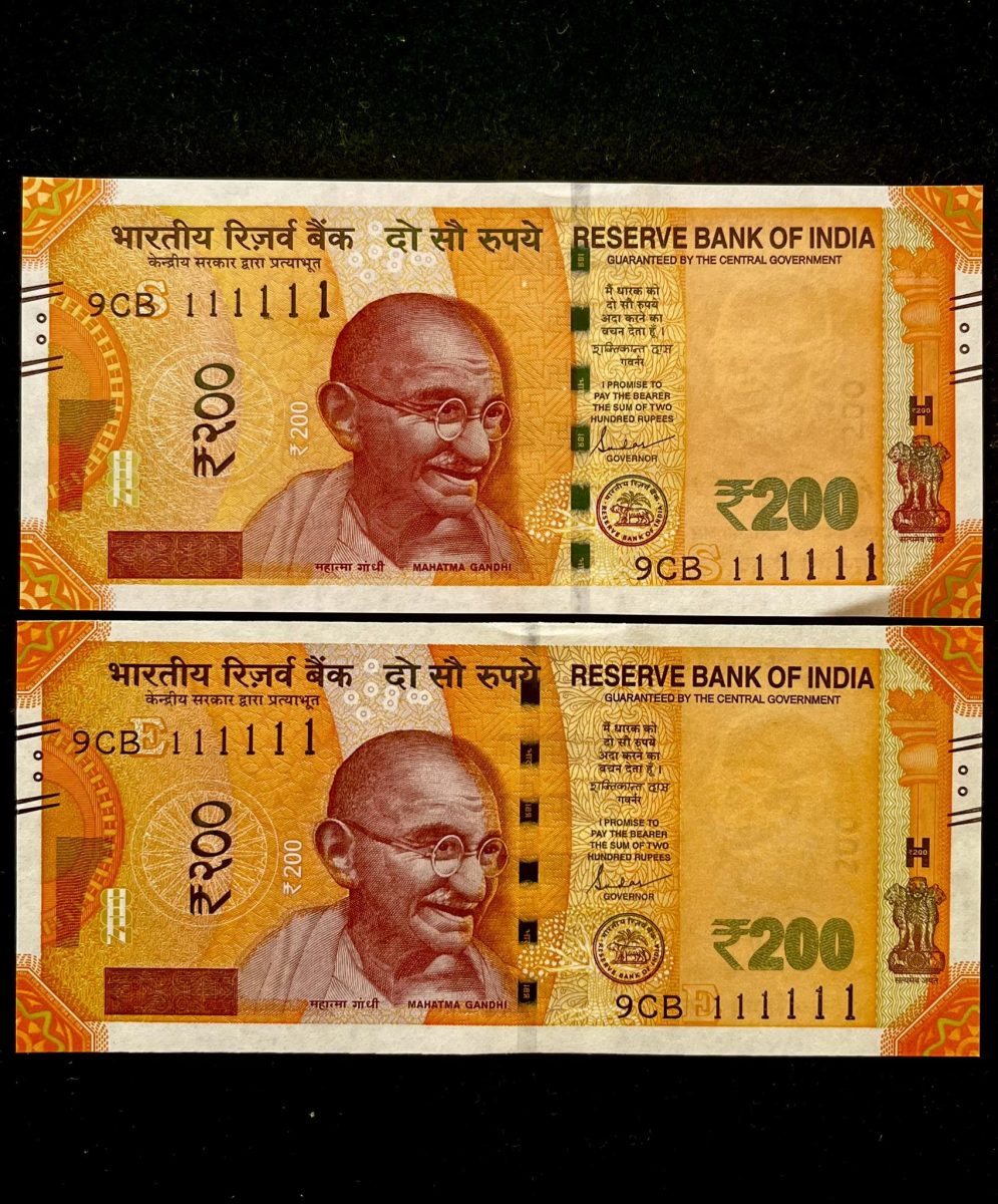 Rs 200 India Banknote Twin Set Super Solid 9CB 111111 Gem Unc Unique and Rare